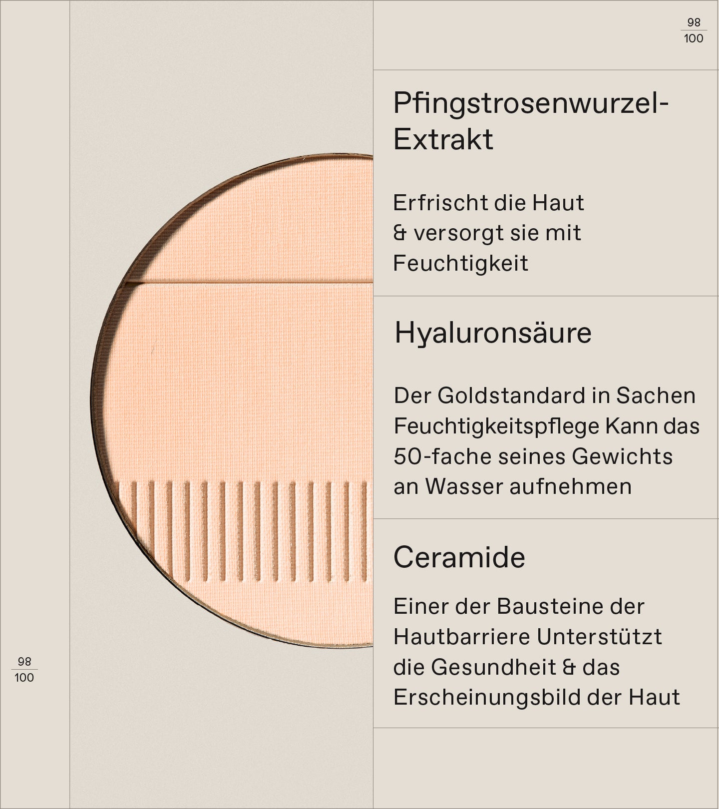 Ein seidig-zarter Kompaktpuder, der das Make-up fixiert und das Aussehen der Haut perfektioniert. Angereichert mit Pfingstrosenwurzel-Extrakt, Hyaluronsäure und Ceramiden, lässt er Unebenheiten verschwinden und sorgt für einen makellosen, natürlichen Teint.